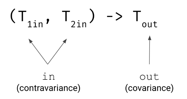 이 계층에서 아래로 내려가면 parameter type은 typing system 계층에서 더 높은 type으로 이동하고, return type은 더 낮은 type으로 이동합니다.