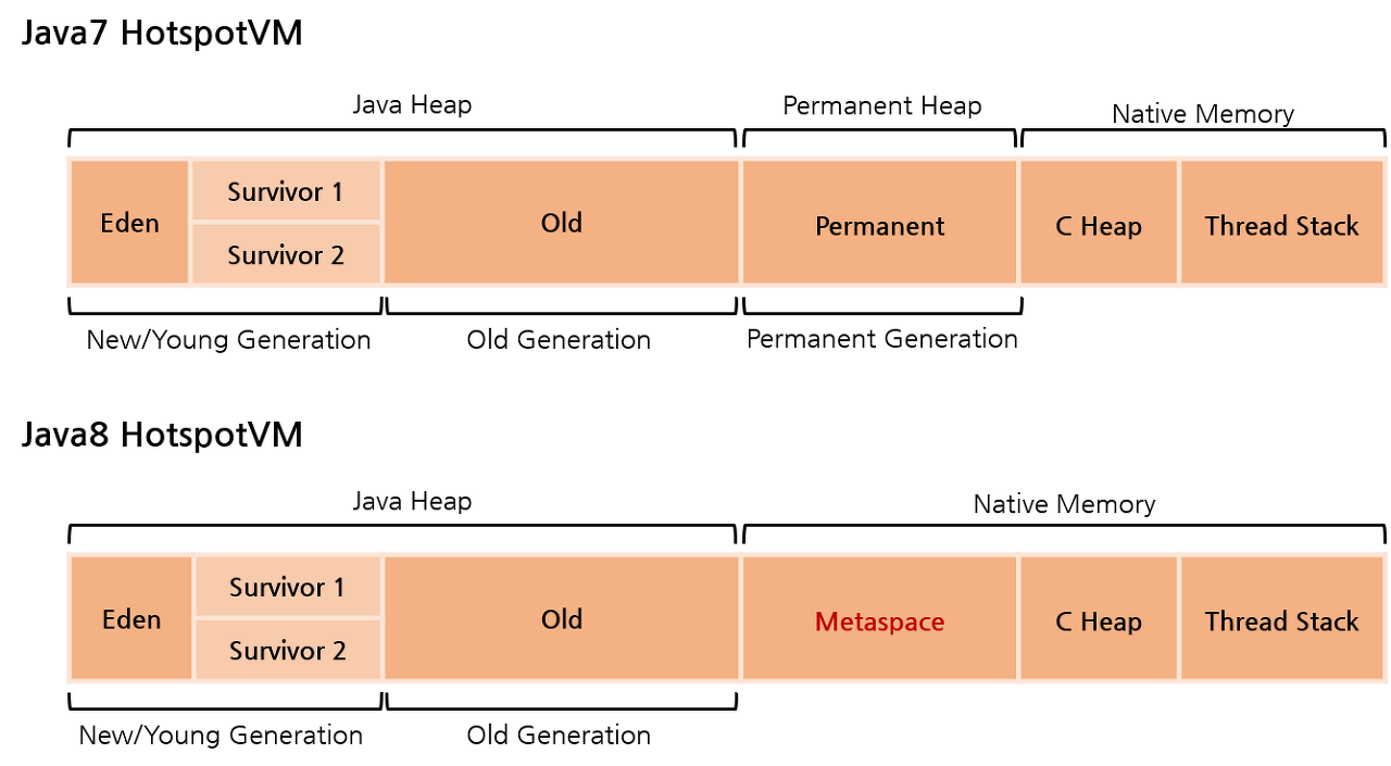 java7기준으로 Heap 영역은 5개 영역 (eden, survivor1, survivor2, old, permanent)